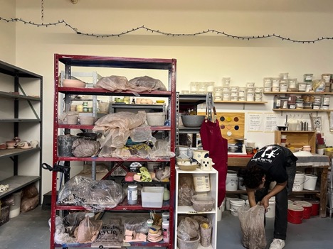Union City, NJ – Talia Boado checks on her dried pottery pieces on Thursday, April 6, 2023. (Photo Credit/Nicole Boado)